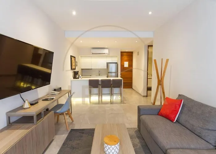 The 2-room Luxury 2Br 2Ba, Sauna, Cinema, Rooftop Pool Playa del Carmen apartment is located in the center of Playa del Carmen and offers quick access to Quinta Alegria Shopping Mall, which is just a 5-minute walk away. Offering a sauna, the apartment is located 0.2 miles from Nuestra Senora del Carmen Catholic Church.